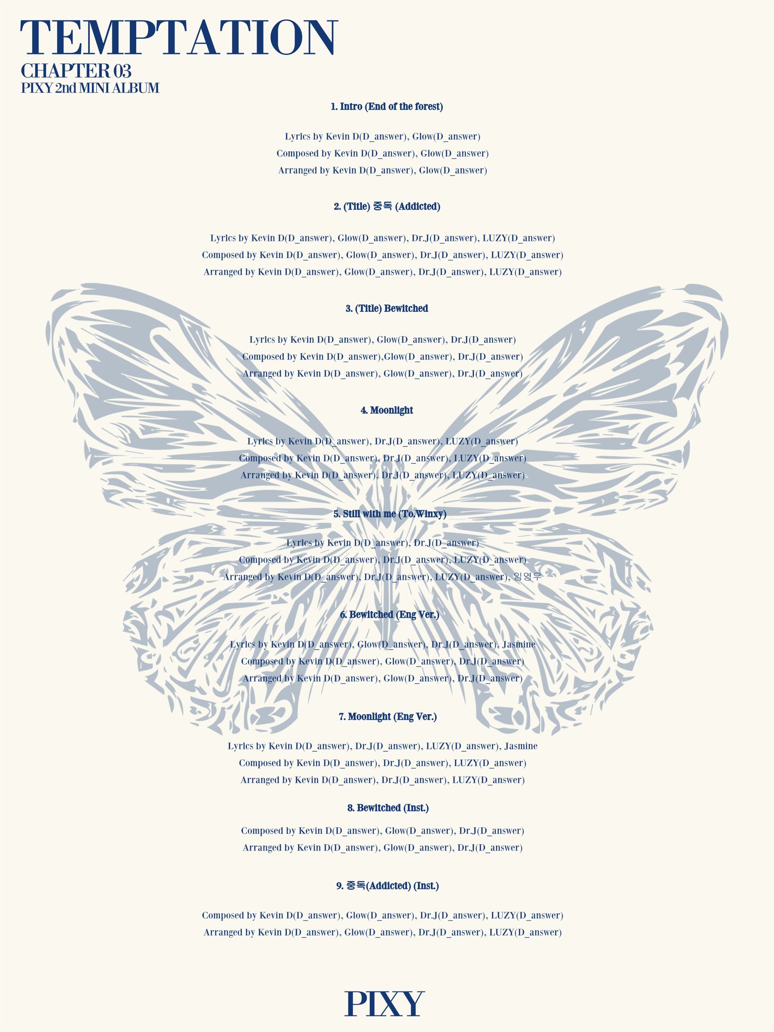 PIXY - 'Temptation' album track list