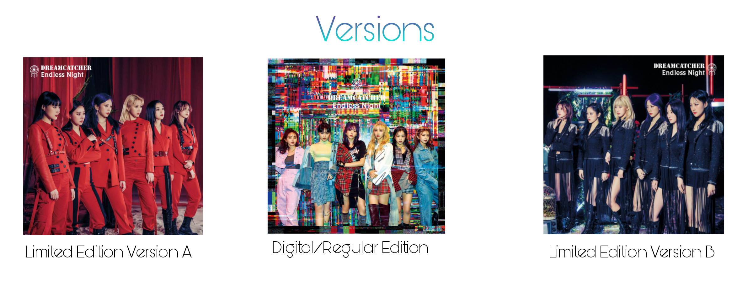 "Endless Night" is the third Japanese single released by Dreamcatcher. It was released in three versions: two limited CD+DVD editions and a regular CD edition. The all editions come with an event participation ticket and the regular edition additionally comes with 1 trading card of 7 types. The original version of the second track can be found on their Korean digital single "Haneuleul Neomeo", and the original version of the third track can be found on their special Korean mini-album Raid of Dream.