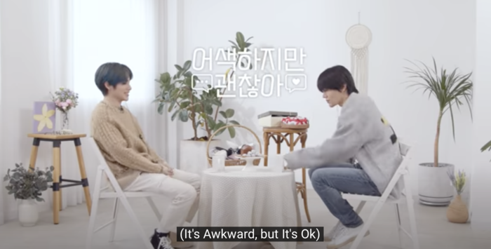 It's Awkward But It's OK (어색하지만 괜찮아), known as Awsaz (어사즈), is an ongoing YouTube variety web series that plays on the common perception that members of the large boy group NCT do not know each other well. It divides members into pairs that actually don't know each other that well or haven't been close in a one-on-one environment. The pair gets directions and challenges in another room from a different pair of members to encourage them to be silly and open up.