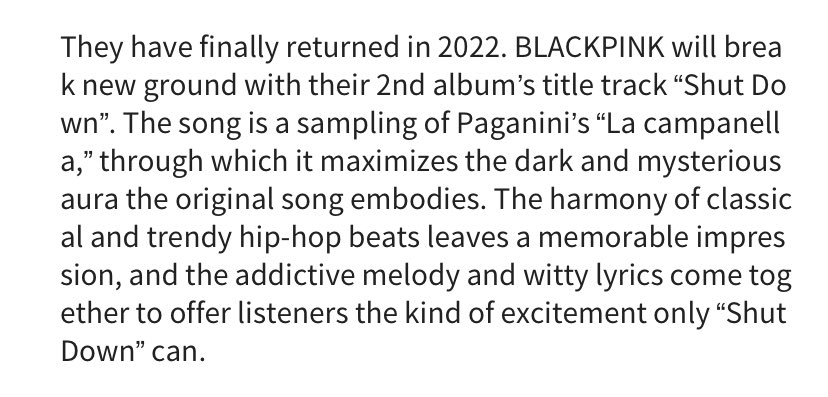 “The song is a sampling of Paganini’s “La campanella,” through which it maximizes the dark and mysterious aura the original song…