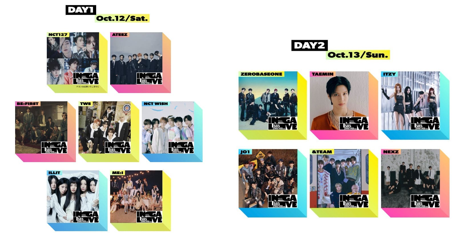 October 12: ATEEZ, BE:FIRST, ILLIT, ME:I, NCT 127, NCT WISH, TWS